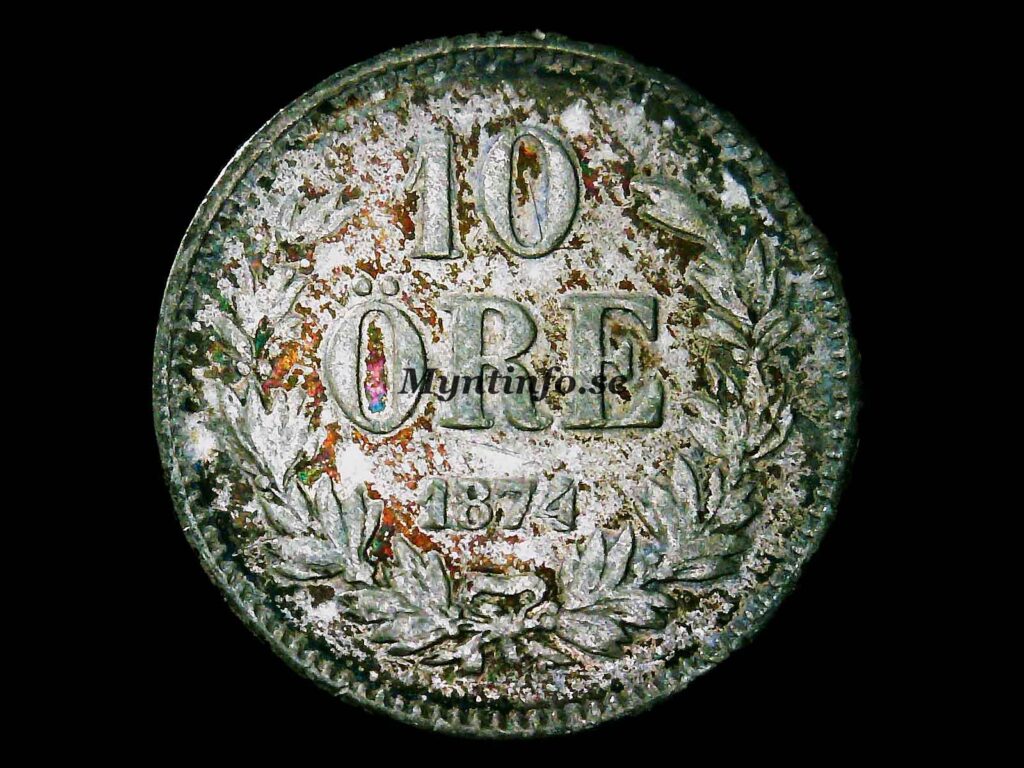 | Baksida (frånsida) | -10 ÖRE 1874 |