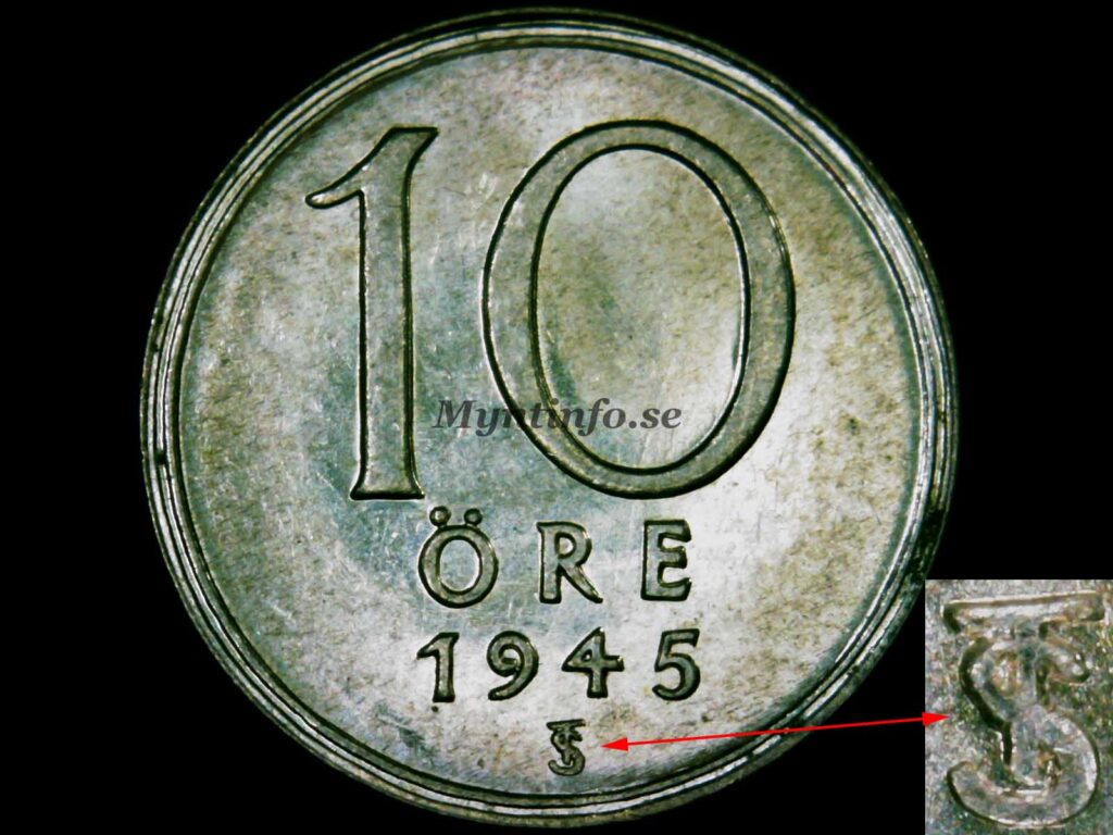 | Baksida (frånsida) | -10 ÖRE 1945 |