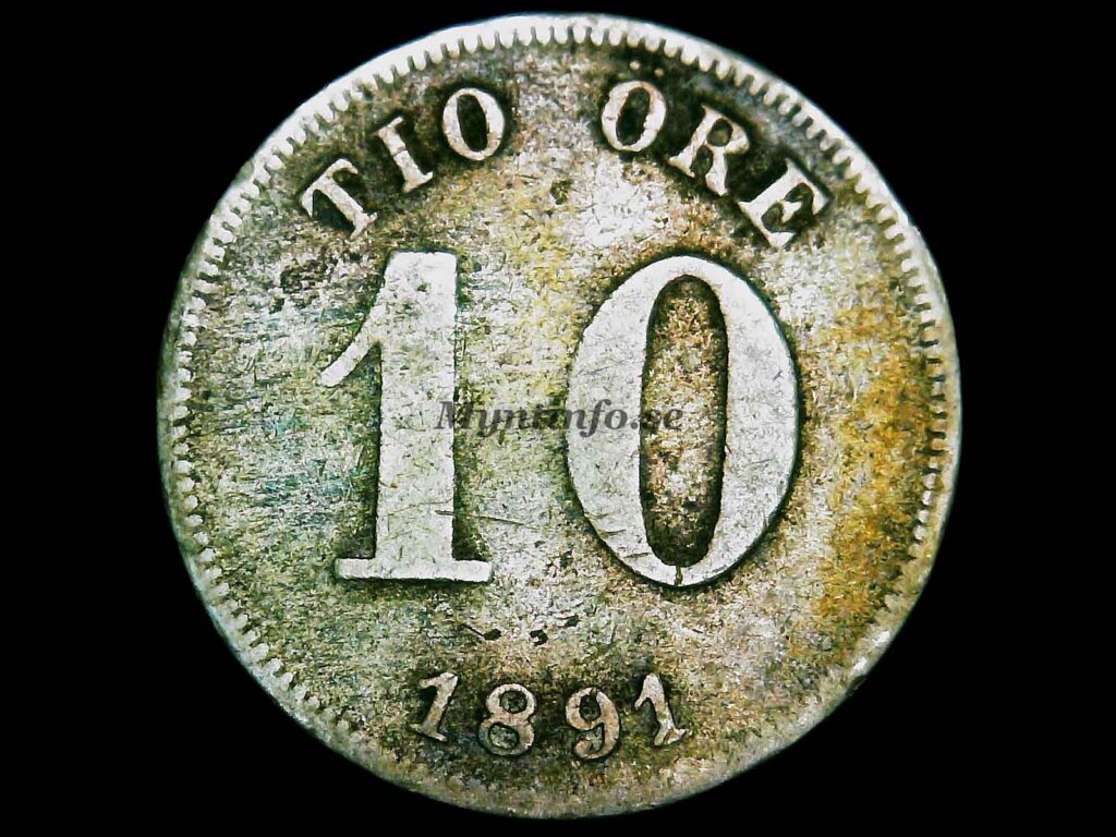 | Baksida (frånsida) | -TIO ÖRE - 10 - 1891 |