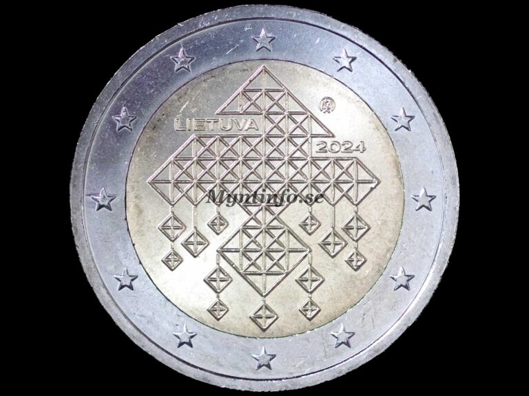 På åtsidan återfinns även texten LIETUVA, årtalet 2024 samt myntmärket från Litauens myntverk.