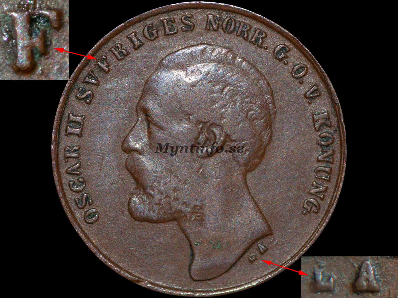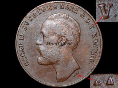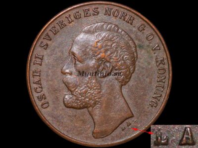Framsida (åtsida) -OSCAR II SVERIGES NORR. G.O.V. KONUNG. – L.A.