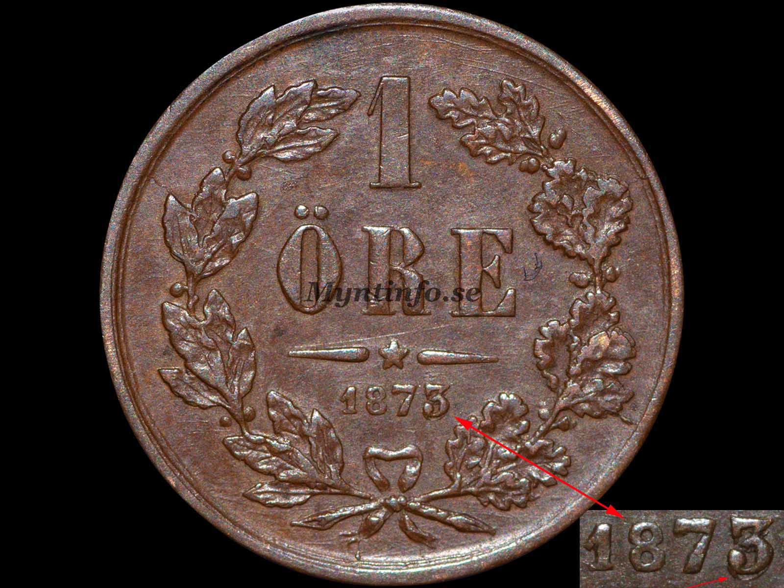 Vi på Myntinfo arbetar aktivt med att reda ut frågetecknen kring 1873. Särskilt varianten ”1 betydligt mindre än 3 & 87 mellanstora” är svåranalyserad då den är extremt lik ”18 mindre än 73”. Vi behöver få in fler exemplar för att vara 100% säkra på om vi ska behålla denna som en egen huvudvariant.