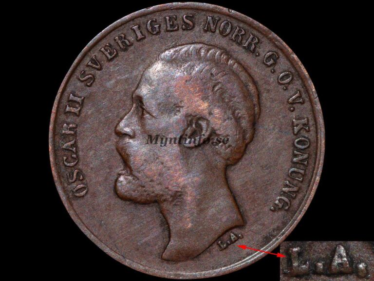 | Framsida (åtsida) | -OSCAR II SVERIGES NORR. G.O.V. KONUNG. – L.A. |