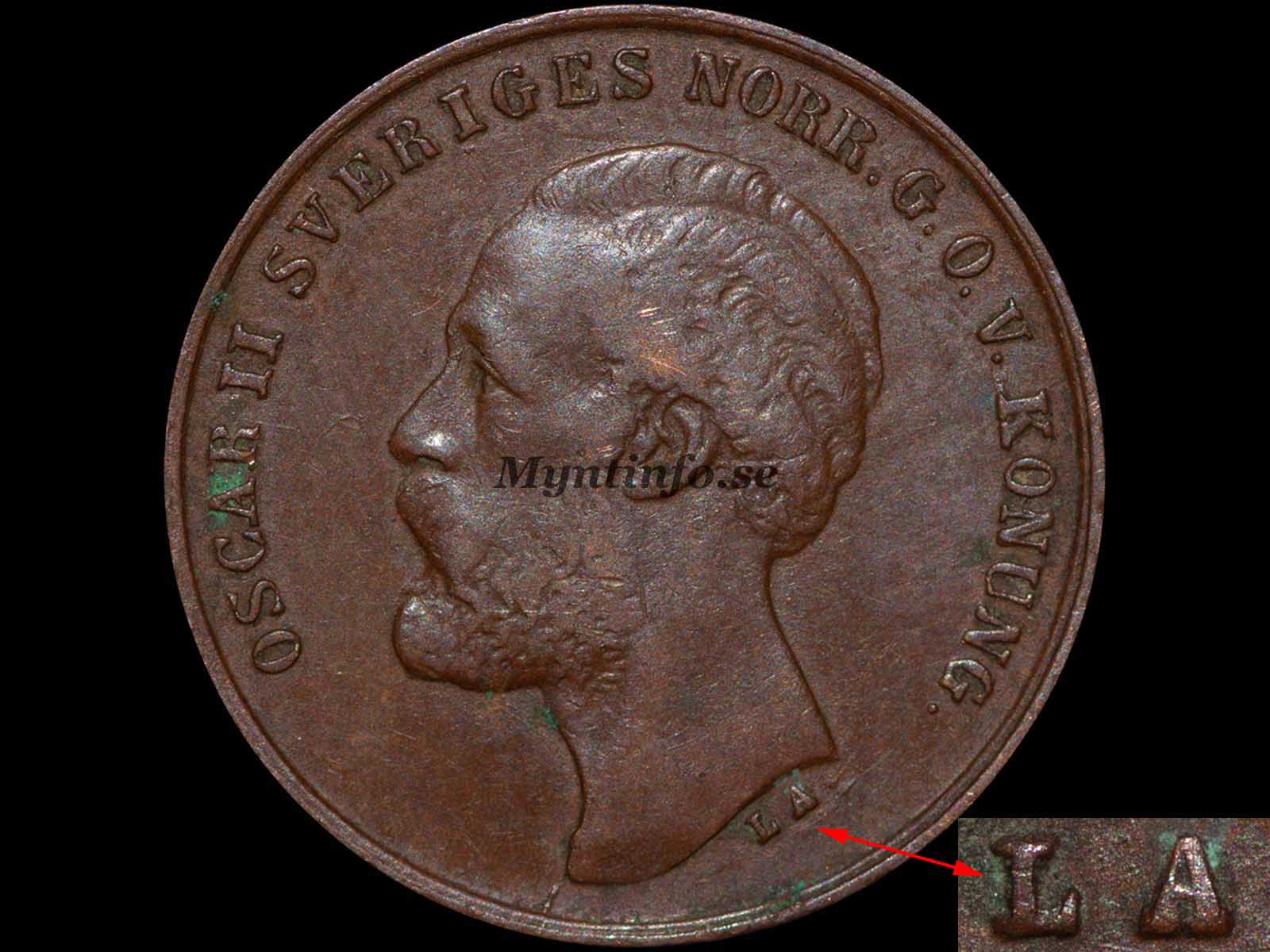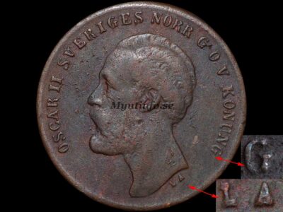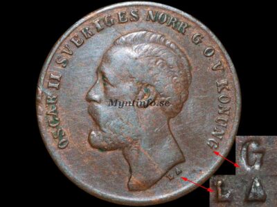 Framsida (åtsida) -OSCAR II SVERIGES NORR. G.O.V. KONUNG. – L.A.