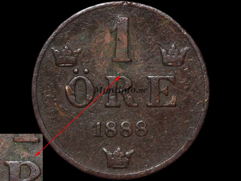 År 1888 är ytterligare ett år i 1-öresserien där vi ser två tydliga varianter i valörens placering. Trots att skillnaden är markant, är det en detalj som ofta förbises i enklare samlarlistor.