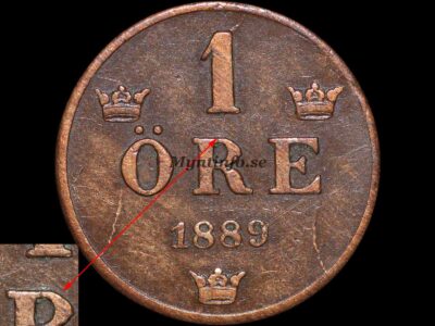 År 1888 är ytterligare ett år i 1-öresserien där vi ser två tydliga varianter i valörens placering. Trots att skillnaden är markant, är det en detalj som ofta förbises i enklare samlarlistor.