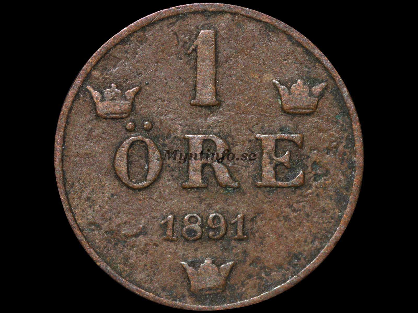 | Baksida (frånsida) | -1 – ÖRE – 1891 |