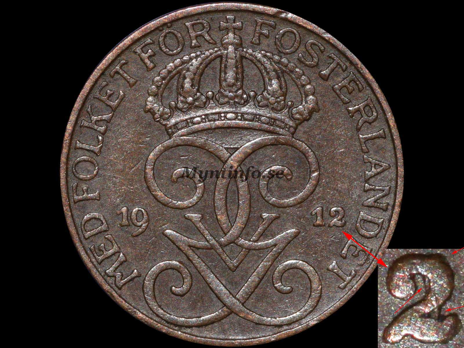 Vi på Myntinfo har en teori om att varianten ”2 på 1” uppstod som ett resultat av sparsamhet och tidsnöd vid Myntverket under årsskiftet 1911–1912. Istället för att kassera fullt fungerande stampar från 1911, valde man att helt enkelt punsa in en tvåa över den gamla ettan. Det faktum att resterna är så pass tydliga tyder på att man prioriterade att snabbt få ut nya mynt i cirkulation framför att dölja spåren av den gamla stampen perfekt.