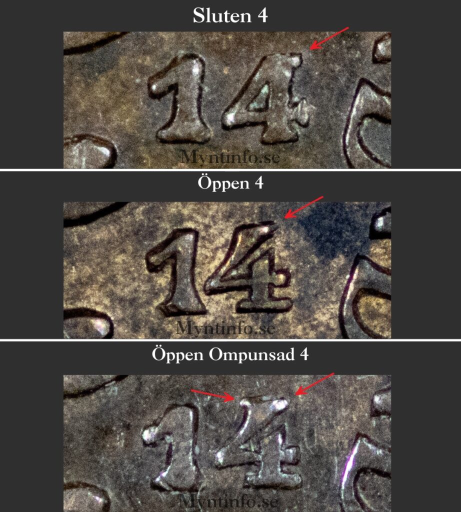 År 1914 är ett år där själva årtalet i sig är relativt svårt att hitta, vilket gör de ovanliga varianterna till verkliga rariteter. Totalt finns det tre kända huvudvarianter som vi här går igenom för att hjälpa dig att identifiera de olika utförandena av siffran 4.