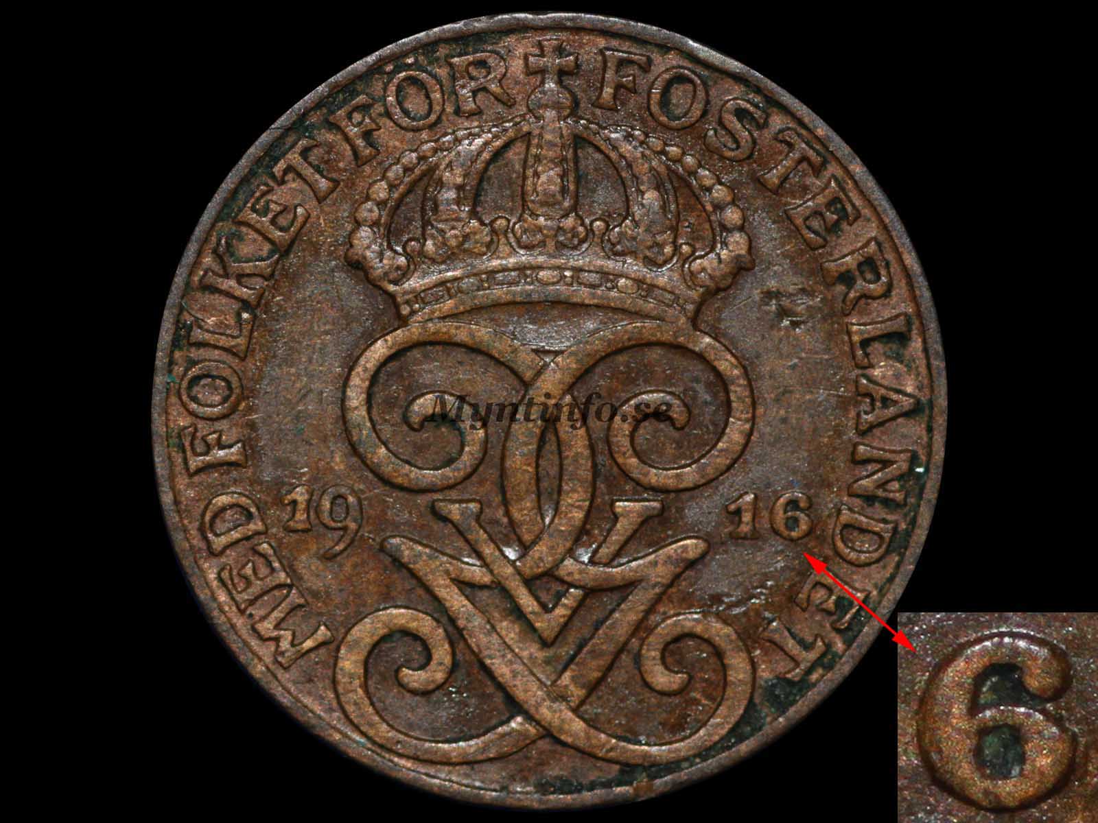 År 1916 är ett år med många varianter i flera svenska valörer, och det är nästan alltid siffran sex som står i fokus. För 1-öringarna finns det totalt två kända huvudvarianter från detta årtal som vi här går igenom i detalj.