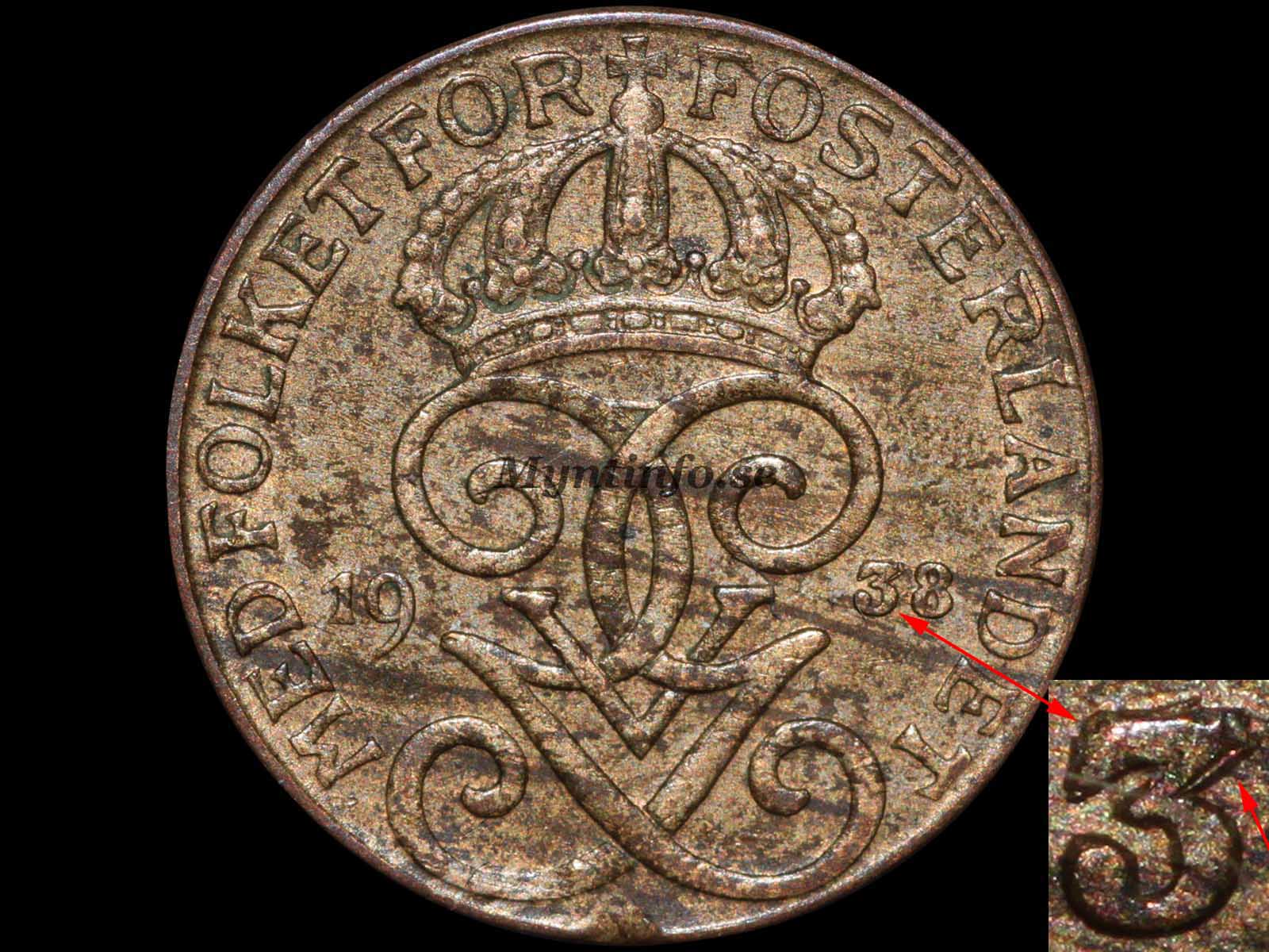 För år 1938 finns det två kända huvudvarianter inom 1-öresserien. Här går vi igenom skillnaderna mellan originalpräglingen och den tydliga ompunsningen som utgör den mer intressanta varianten.