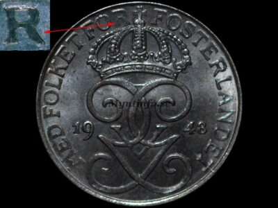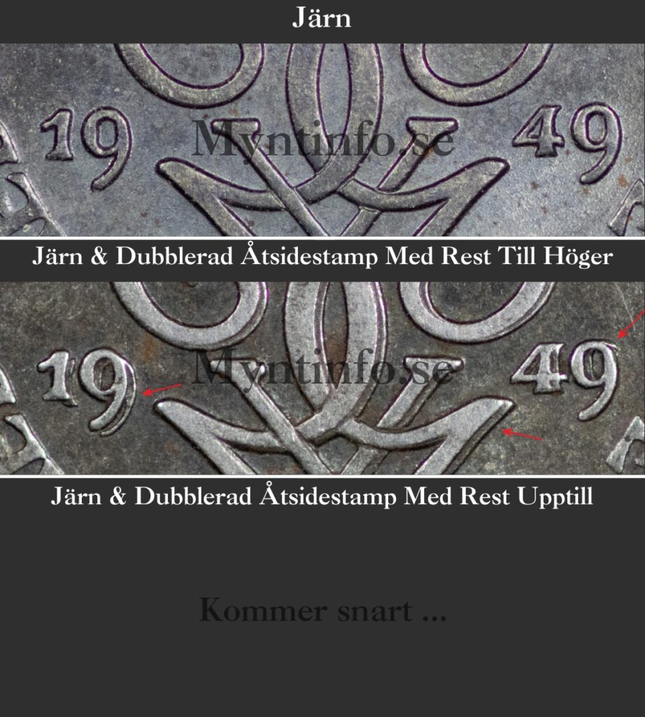Denna variant är betydligt sällsyntare än den första. Här har åtsidans stamp blivit dubblerad eller dubbelpunsad, vilket syns tydligast i årtalet på siffrorna 1, 9, 4 och 9. Man kan även se tydliga rester på monogrammet. Det unika kännetecknet för just denna variant är att samtliga rester konsekvent ligger åt höger.