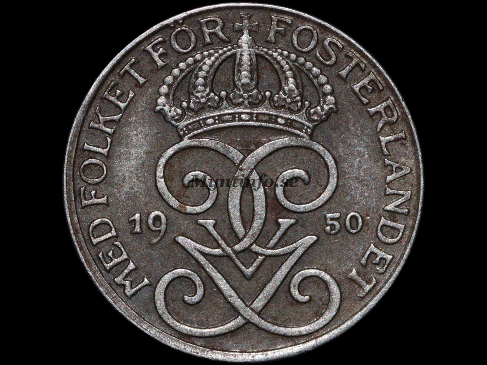 Denna variant är präglad i järn, vilket gör den lätt att särskilja från de övriga genom sin mörka färg och magnetiska egenskaper. Det är den enda varianten från 1950 som är tillverkad i detta material.