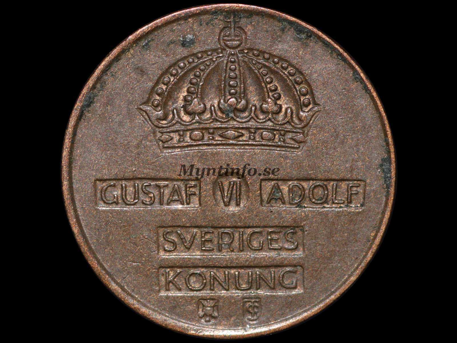 Framsida (åtsida) -GUSTAF VI ADOLF – SVERIGES – KONUNG – TS
