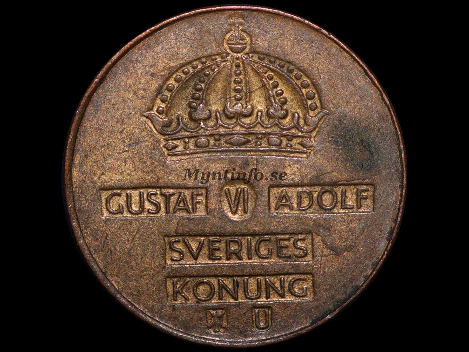 Framsida (åtsida) -GUSTAF VI ADOLF – SVERIGES – KONUNG – U