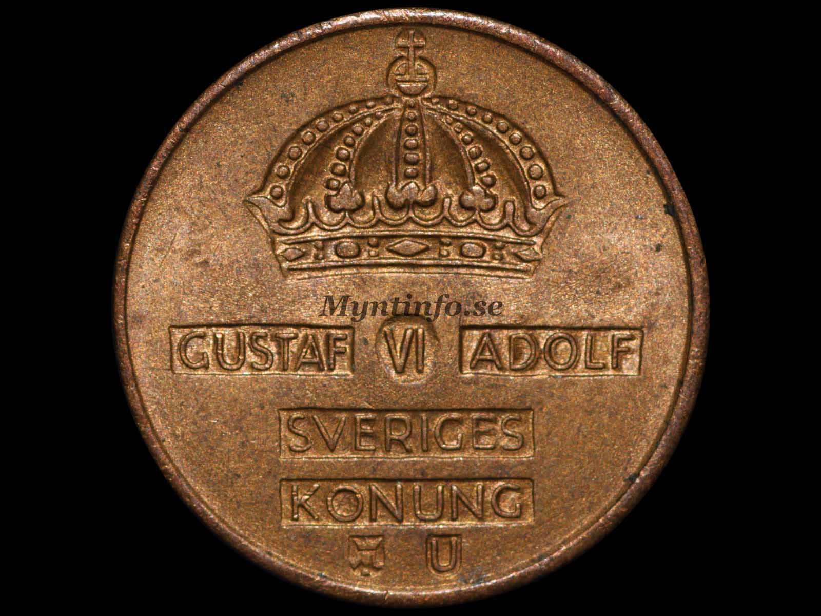 Framsida (åtsida) -GUSTAF VI ADOLF – SVERIGES – KONUNG – U