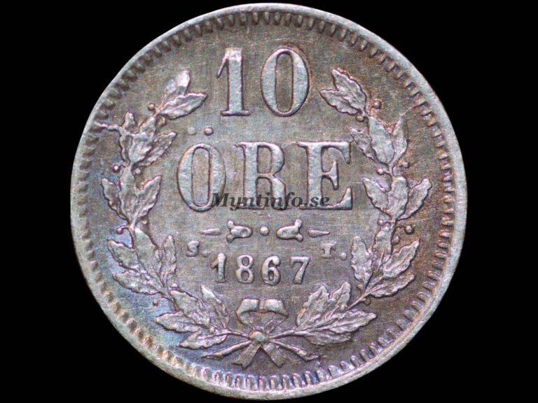 | Baksida (frånsida) | -10 – ÖRE – S.T. – 1867 |