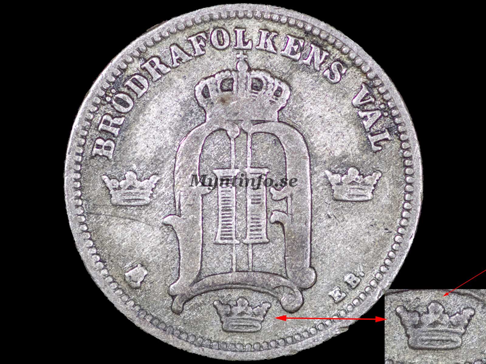 År 1900 finns det två kända varianter inom 10-öresserien, och precis som för åren 1902–1904 handlar skillnaderna om Sveakronornas mittblad på myntets framsida. Trots att dessa varianter sällan nämns i äldre numismatisk litteratur är de lätta att skilja åt när man vet vad man ska titta efter. Längst ner finns en samlingsbild där båda visas sida vid sida.