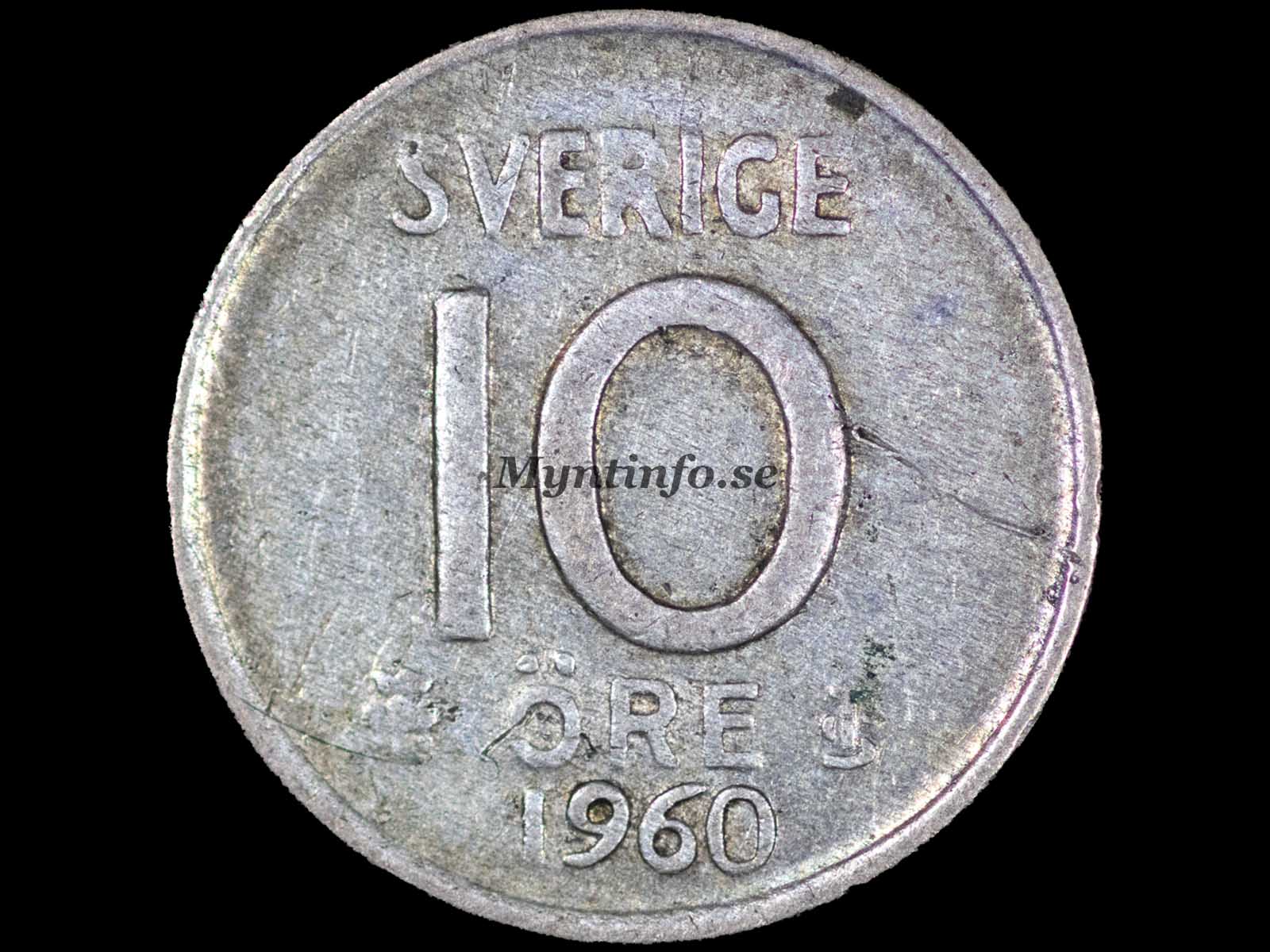 | Baksida (frånsida) | -SVERIGE – 10 – ÖRE TS – 1960 |