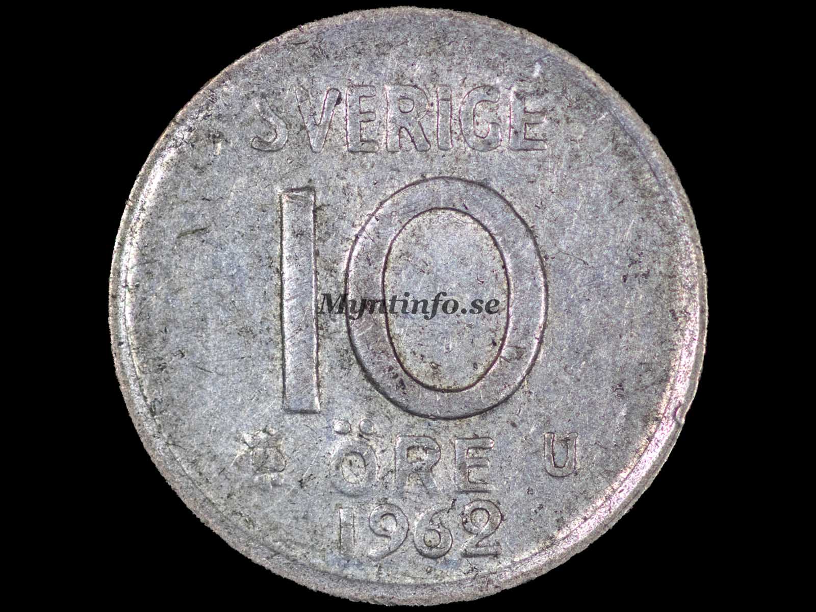 | Baksida (frånsida) | -SVERIGE – 10 – ÖRE U – 1962 |