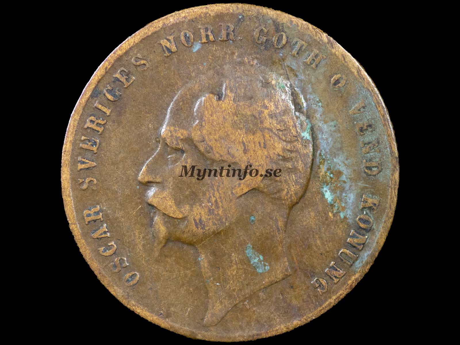 | Framsida (åtsida) | -OSCAR SVERIGES NORR. GÖTH. O. VEND. KONUNG. – L.A. |