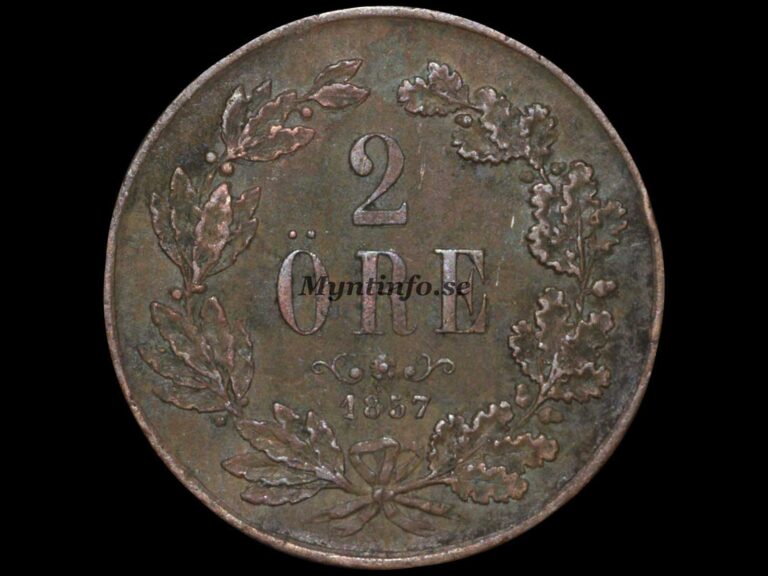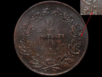 2-Öre 1857 – Kort Skägg & 2.4.5.5.5 Blad
