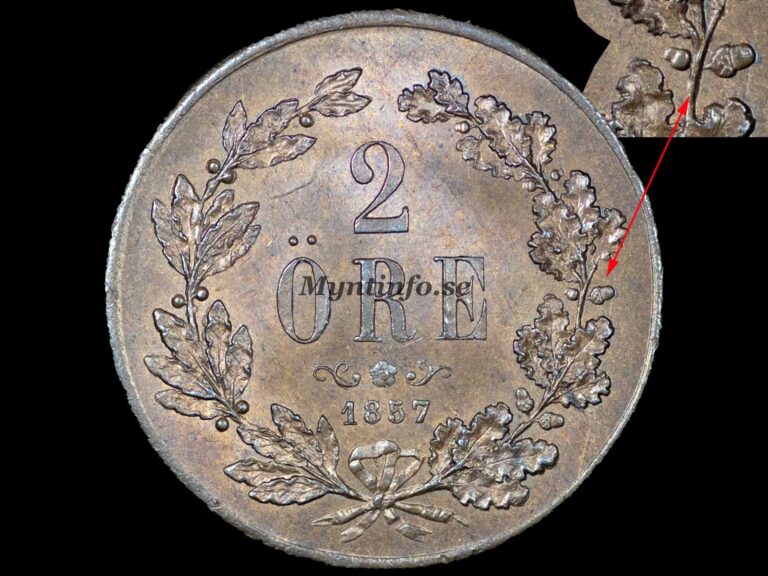 År 1857 är utan tvekan det mest intressanta men också svåraste året inom hela 2-öres-serien. Det finns totalt 12 kända varianter, och i framtiden kan dessa sannolikt delas upp i ännu fler undergrupper. Här går vi igenom varje variant i detalj för att se vad som gör dem unika. Vi rankar även varianterna från 1 till 12, där 1 är den mest sällsynta och 12 är den vanligaste.