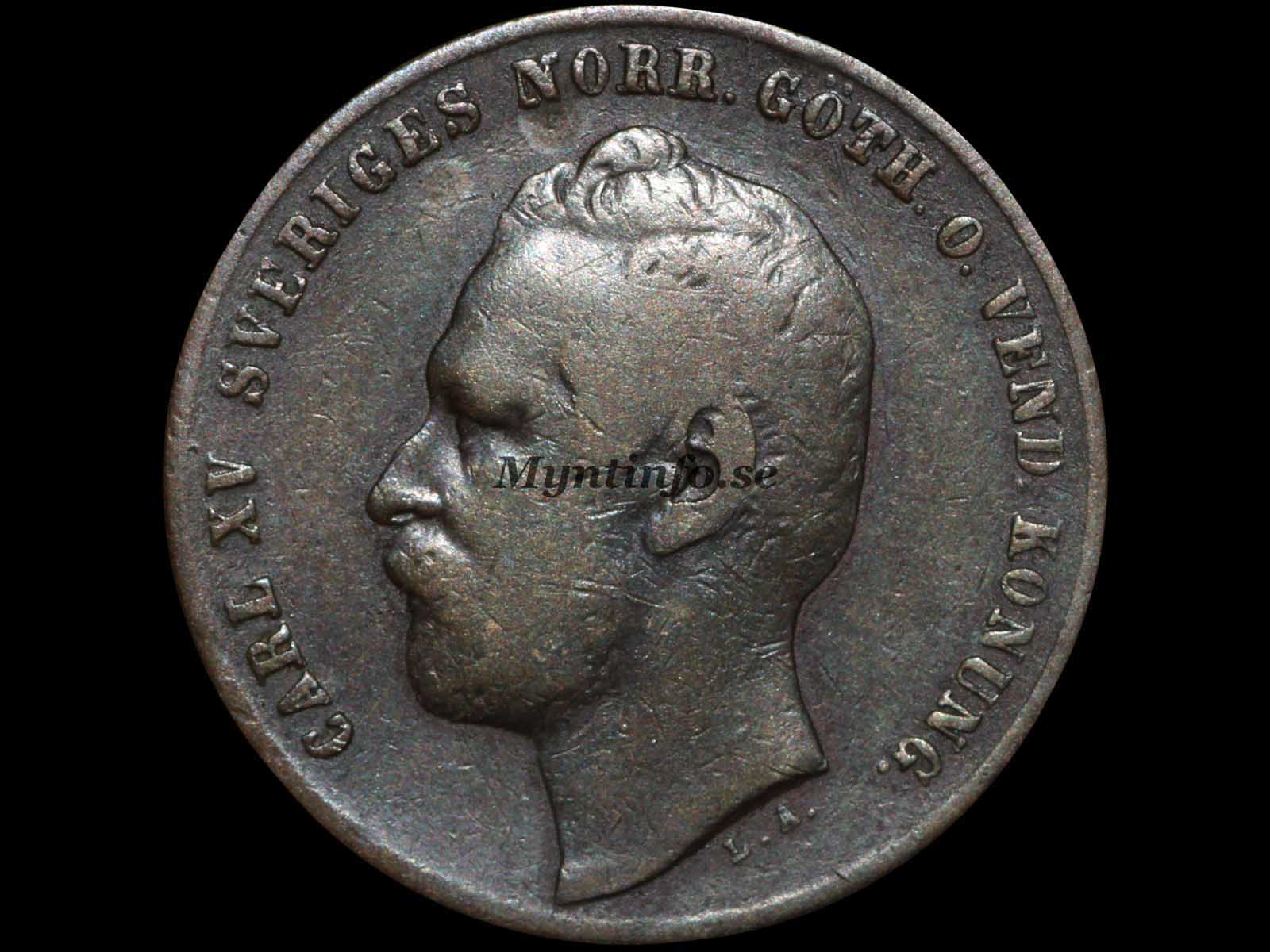 | Framsida (åtsida) | -CARL XV SVERIGES NORR. GÖTH. O. VEND. KONUNG. – L.A. |