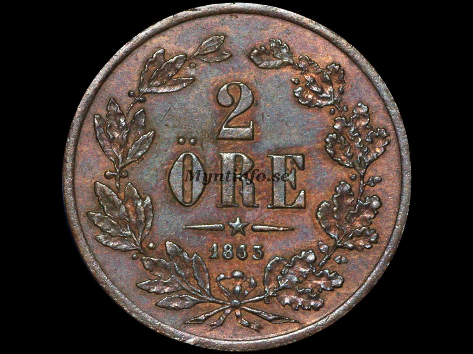 | Baksida (frånsida) | -2 ÖRE 1863 |
