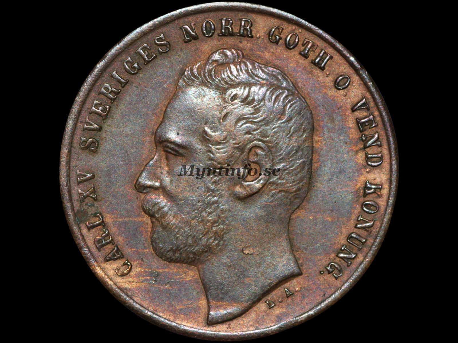 | Framsida (åtsida) | -CARL XV SVERIGES NORR. GÖTH. O. VEND. KONUNG. – L.A. |