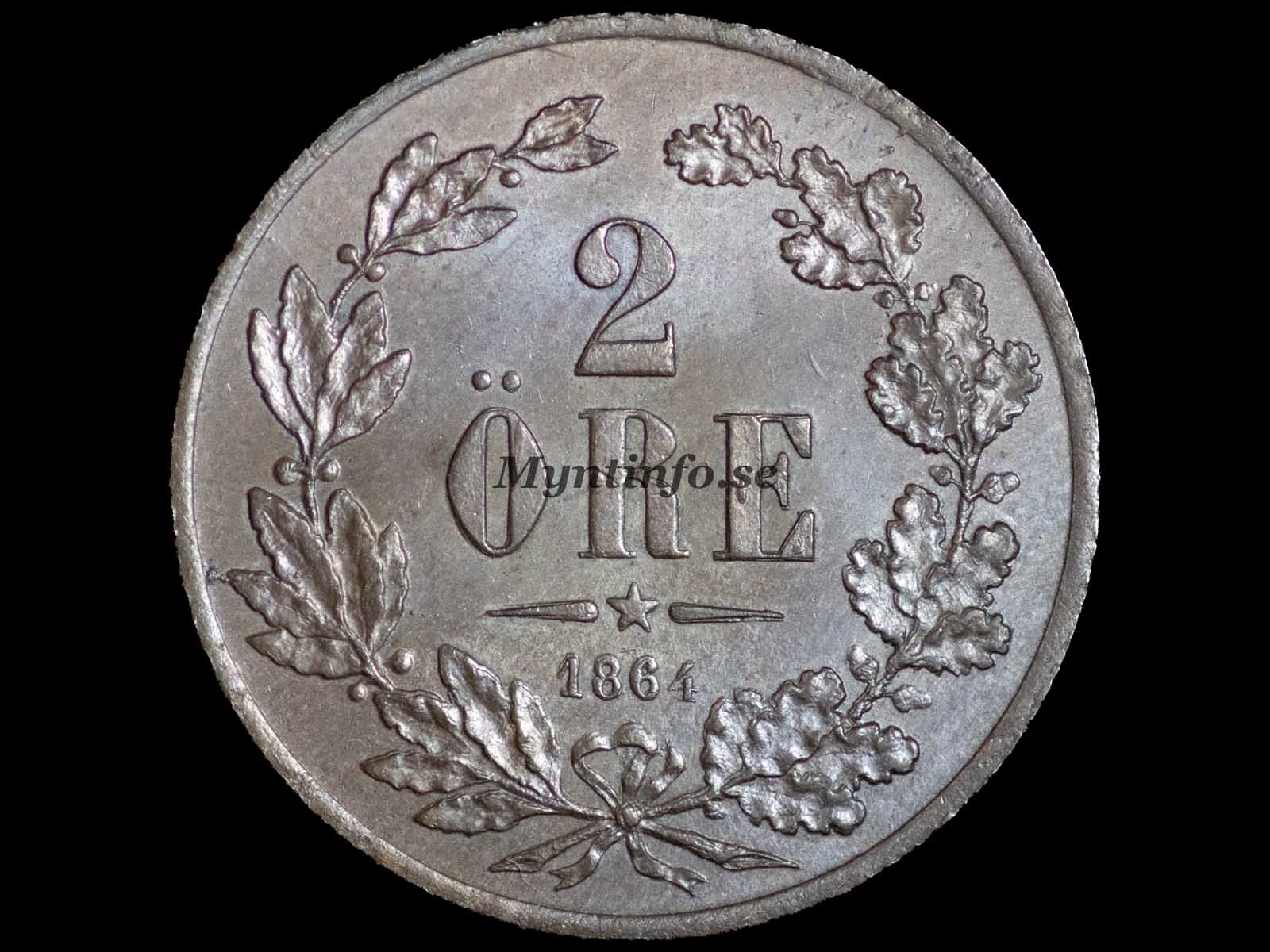 2-Öre 1864 – Litet L.A. & Sista N i KONUNG Ompunsat