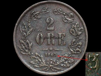 2-Öre 1863 (3 Ompunsad 2 Gånger)