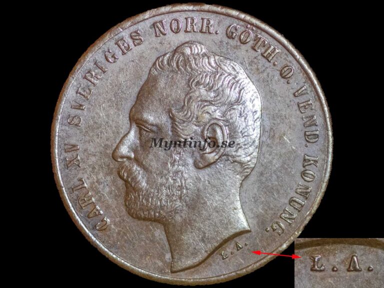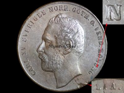 Vår teori på Myntinfo är att man under 1865 kan ha behövt gravera om eller ersätta den lilla A-punsen i Lea Ahlborns signatur. Att Variant 1 är så pass ovanlig tyder på att den större A-punsen endast användes på ett fåtal stampar, möjligen som en nödlösning, innan man återgick till den mer proportionerliga storleken som vi känner igen från de tidigare åren.