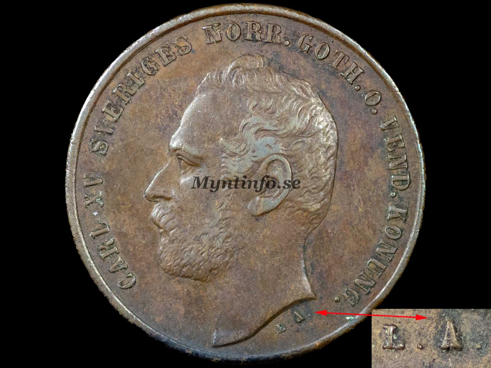 Vår teori på Myntinfo är att man under 1865 kan ha behövt gravera om eller ersätta den lilla A-punsen i Lea Ahlborns signatur. Att Variant 1 är så pass ovanlig tyder på att den större A-punsen endast användes på ett fåtal stampar, möjligen som en nödlösning, innan man återgick till den mer proportionerliga storleken som vi känner igen från de tidigare åren.
