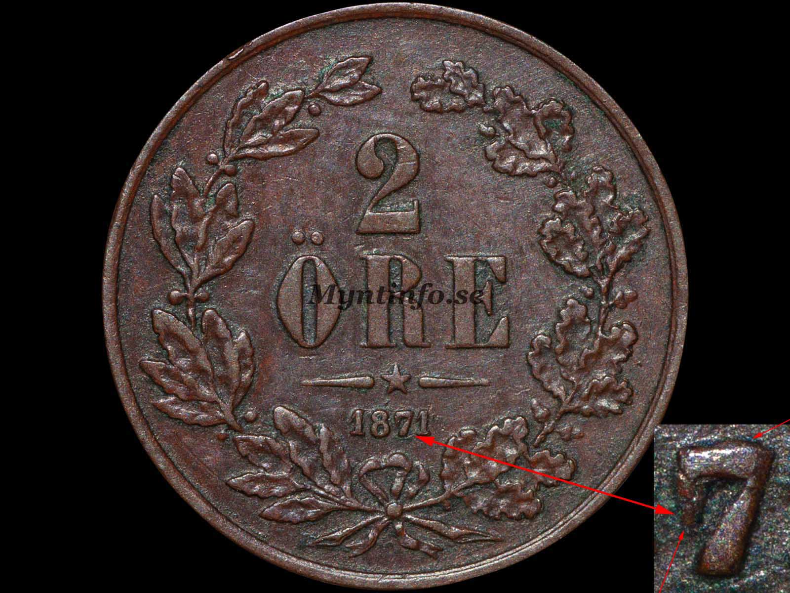 År 1871 är ett mycket intressant år med fyra kända varianter i 2-öres-serien. Här går vi igenom detaljerna som skiljer dem åt och vad du ska leta efter för att identifiera de mer sällsynta exemplaren.