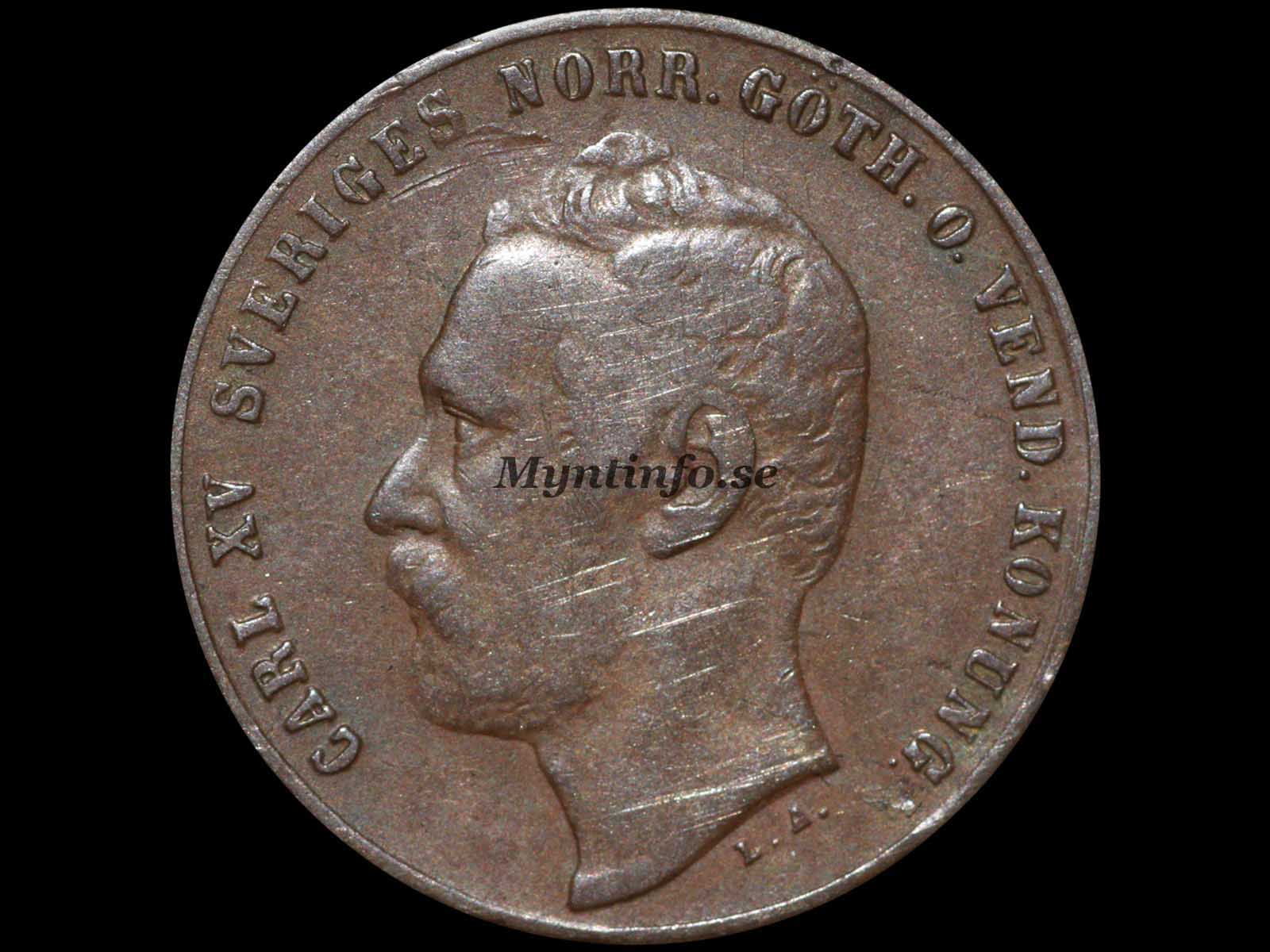 Framsida (åtsida) -CARL XV SVERIGES NORR. GÖTH. O. VEND. KONUNG. – L.A.