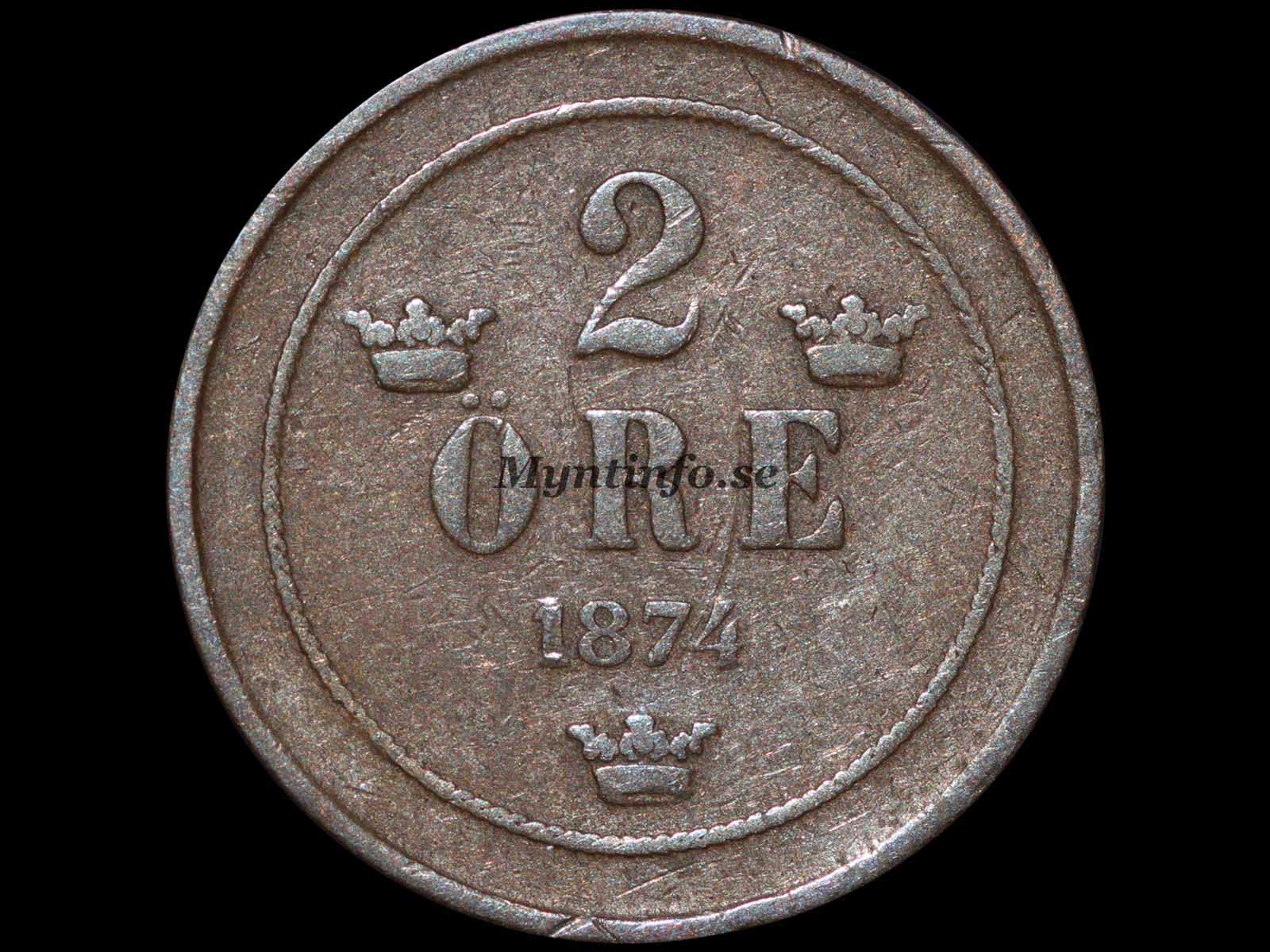 | Baksida (frånsida) | -2 – ÖRE – 1874 |