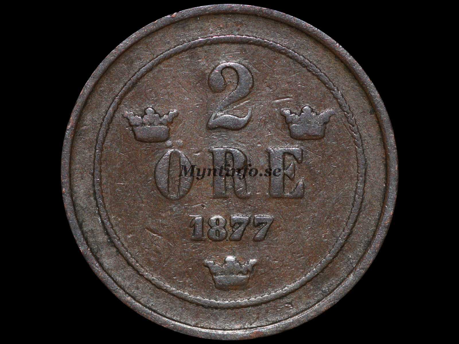 | Baksida (frånsida) | -2 – ÖRE – 1877 |