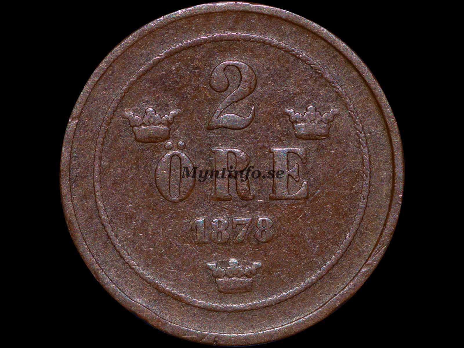 | Baksida (frånsida) | -2 – ÖRE – 1878 |