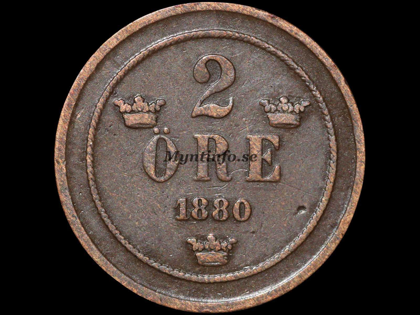 2-Öre 1880 (Spetsvinkligt Kors)