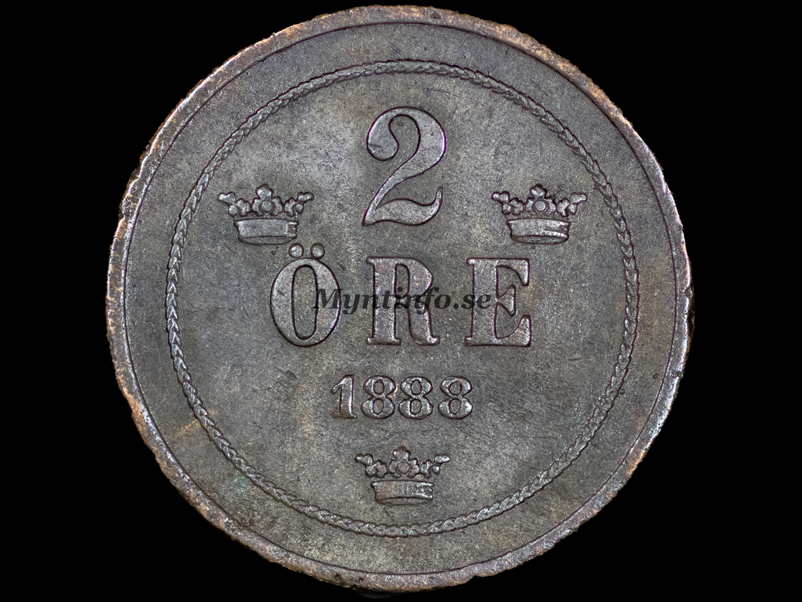 | Baksida (frånsida) | -2 – ÖRE – 1888 |