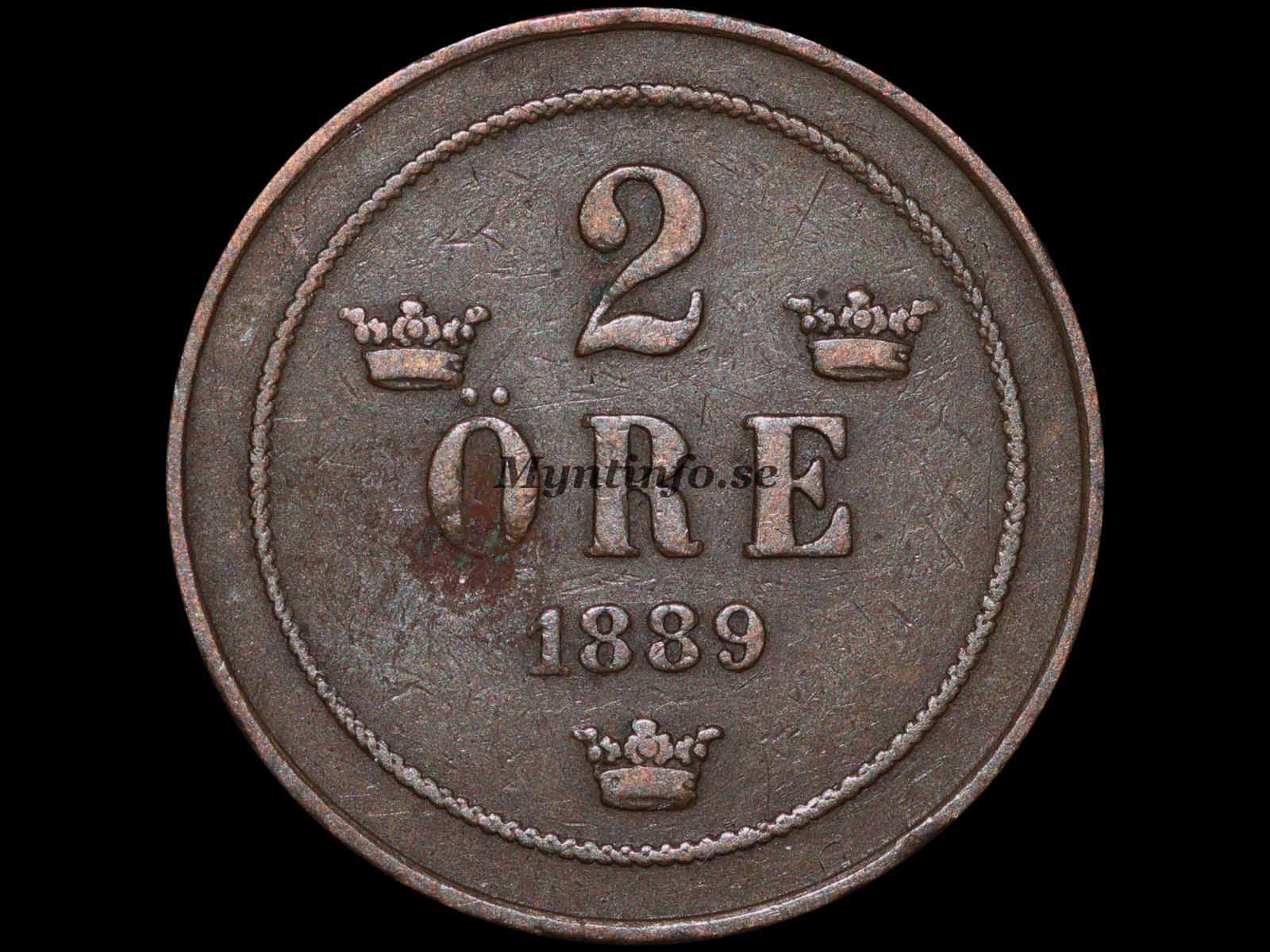 | Baksida (frånsida) | -2 – ÖRE – 1889 |