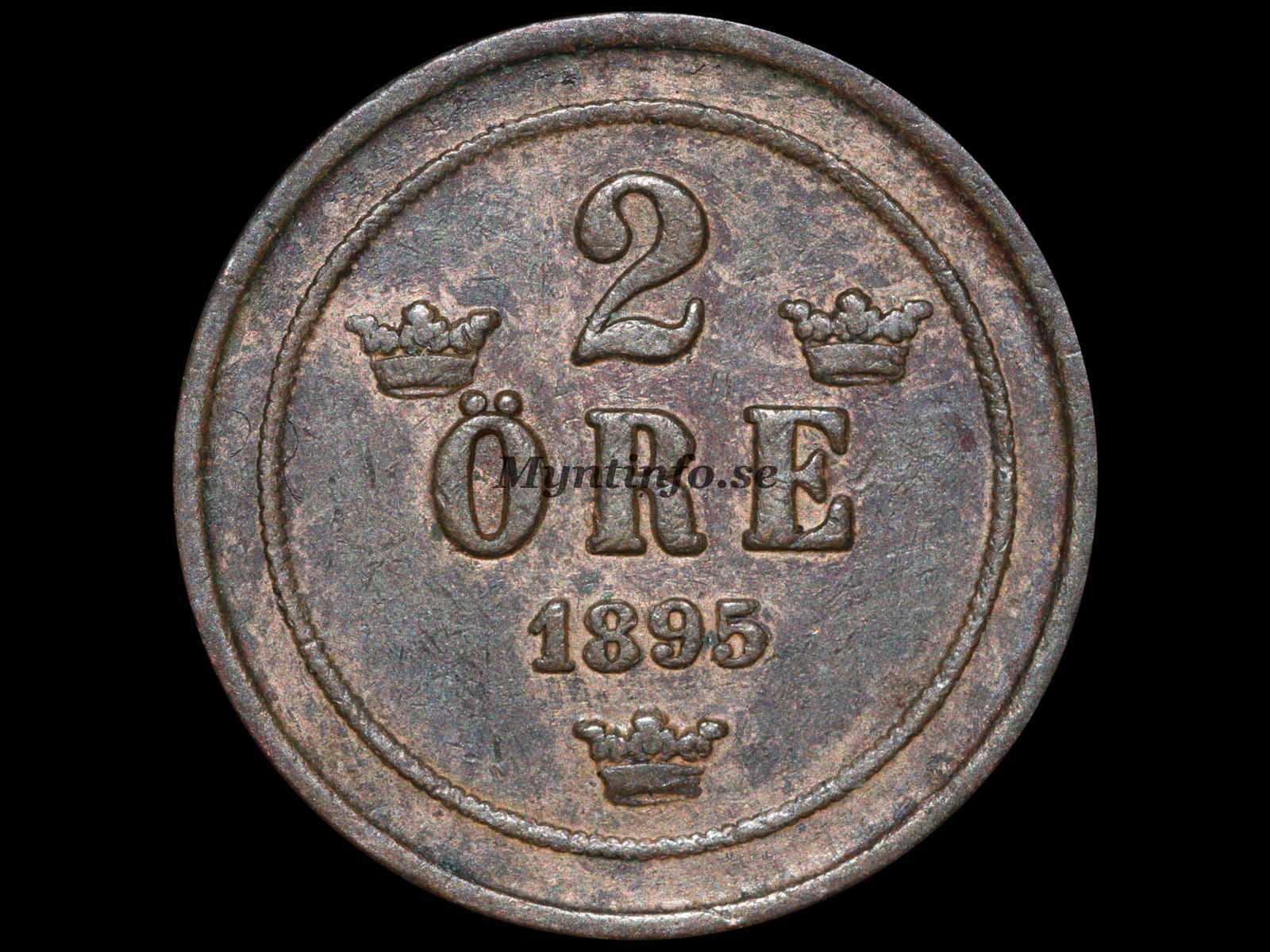 | Baksida (frånsida) | -2 – ÖRE – 1895 |