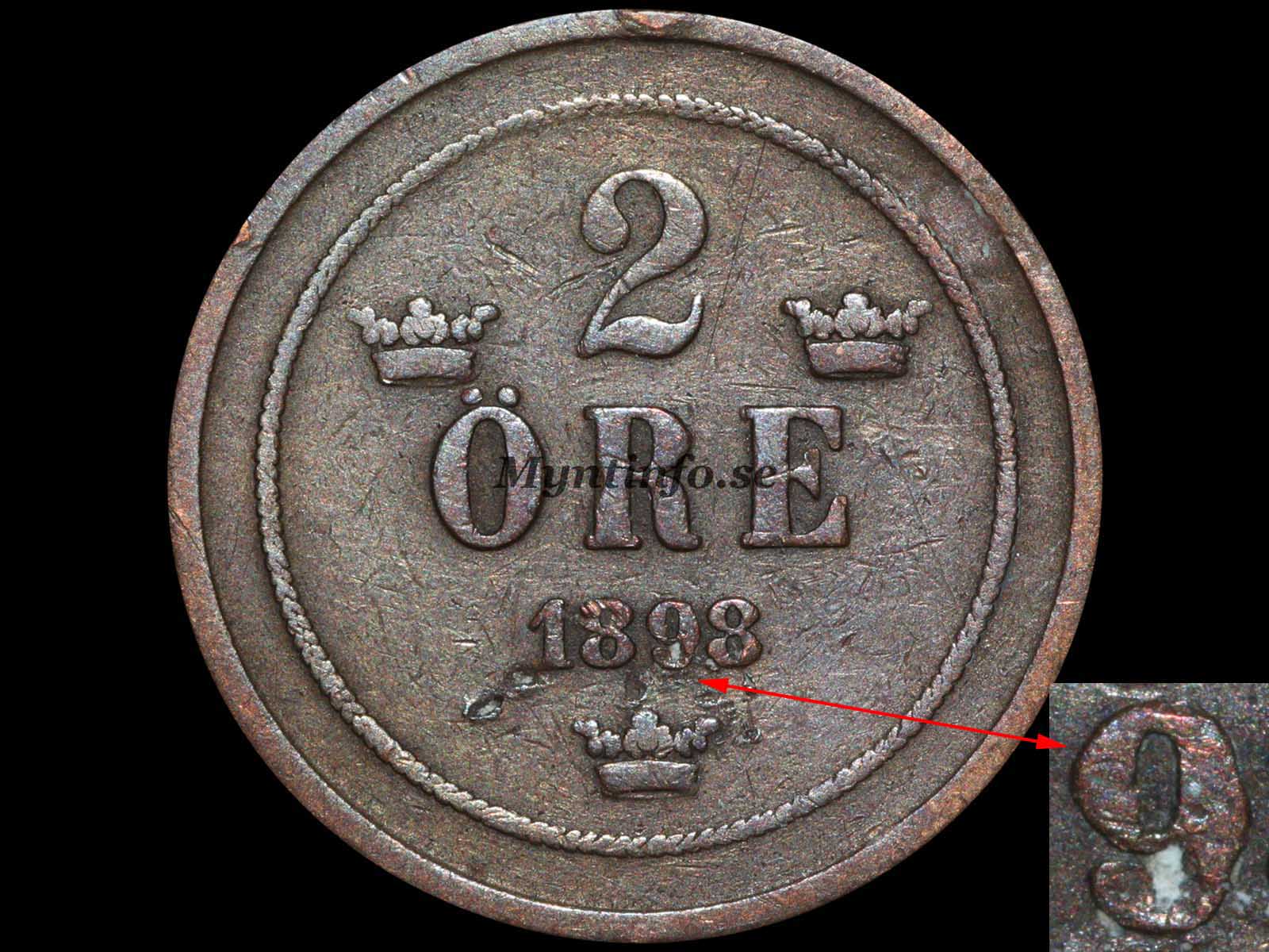 År 1898 bjuder på tre spännande varianter i 2-öresserien. Trots att skillnaderna är så pass unika är de förvånansvärt lite omskrivna i de stora referensverken, men här på Myntinfo går vi igenom alla tre i detalj.