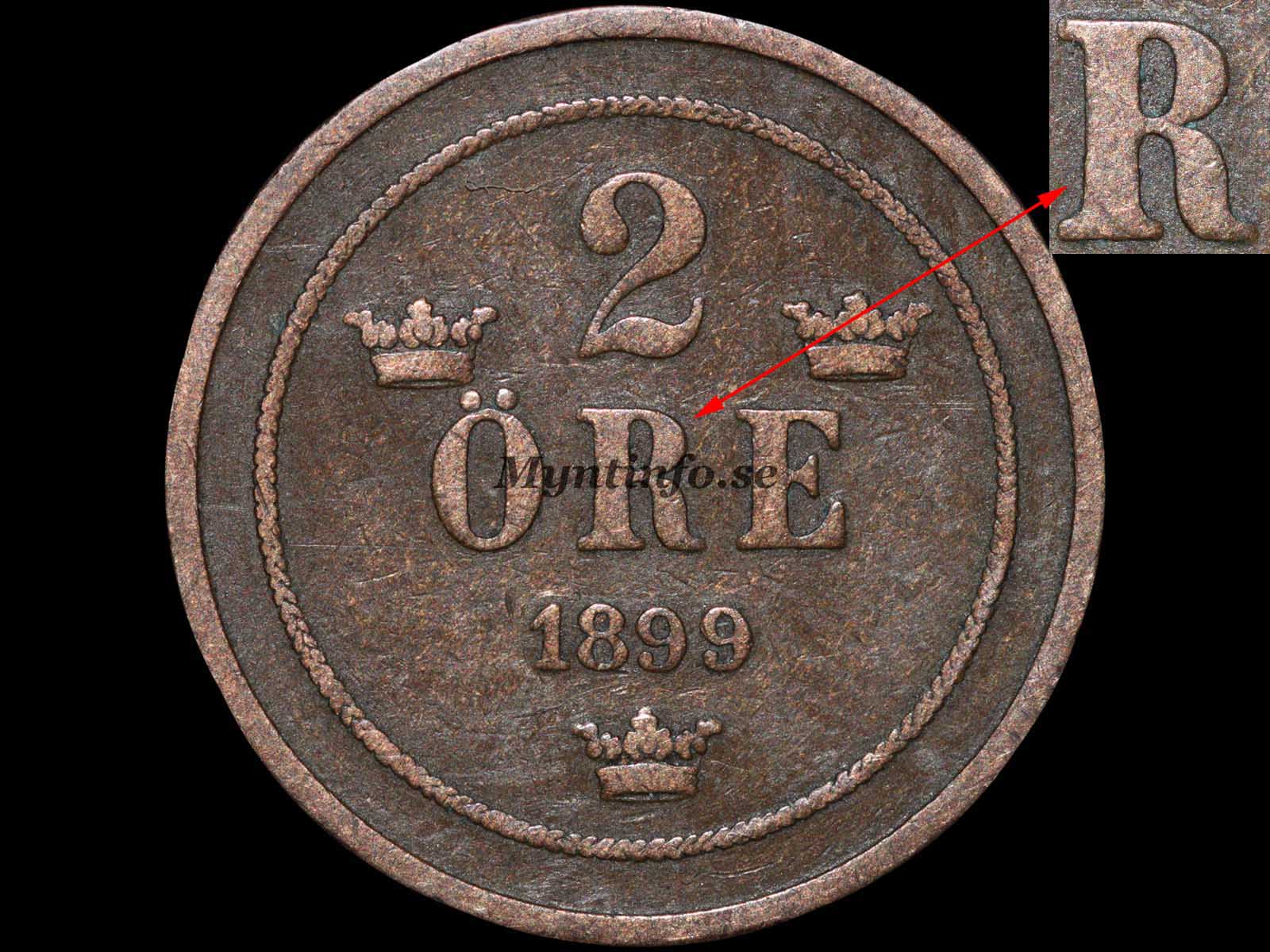 År 1899 finns det totalt två kända varianter i 2-öresserien. Dessa varianter är inte särskilt väl dokumenterade och saknar ofta namn i litteraturen, men här på Myntinfo går vi igenom vad som gör dem unika och hur du skiljer dem åt.