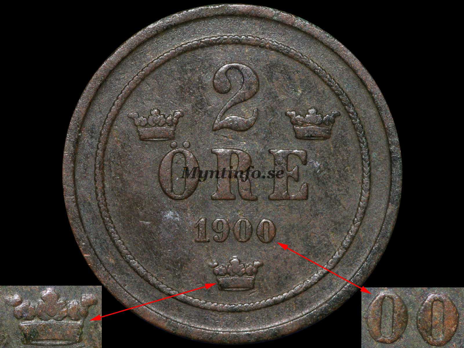 | Baksida (frånsida) | -2 – ÖRE – 1900 |