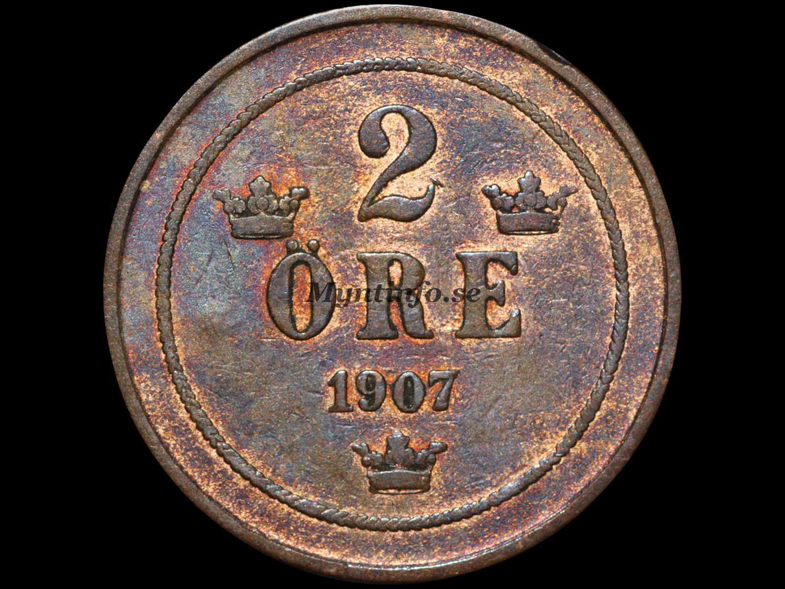 | Baksida (frånsida) | -2 – ÖRE – 1907 |