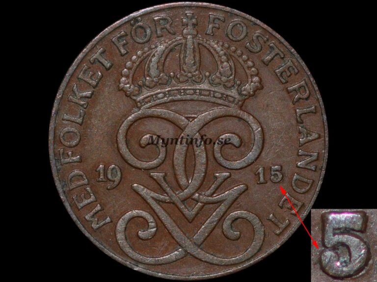 År 1915 är ett mycket intressant år inom 2-öresserien. Här hittar vi en variant som är extremt sällsynt i vissa numismatiska böcker till och med markerad med ett ”R” för raritet. Vi på Myntinfo har dessutom gjort spännande observationer kring denna svåra variant som inte alls är särskilt kända i samlarkretsar.