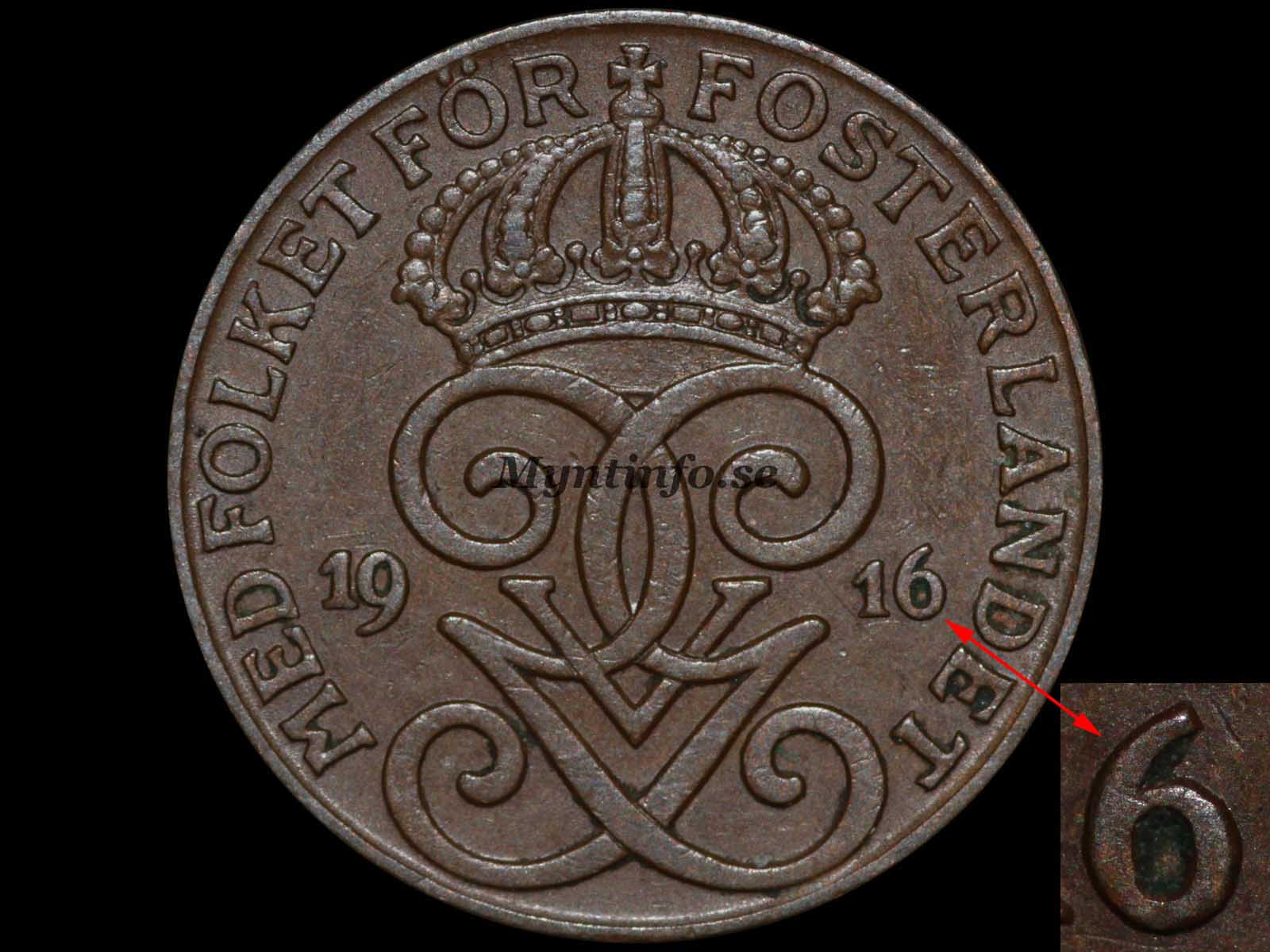 År 1916 är ett år med många varianter i flera svenska valörer, och det är nästan alltid siffran sex som är i fokus. För 2-öringarna finns det totalt tre olika varianter från detta årtal som vi här går igenom i detalj.
