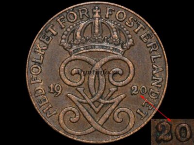 Att vi hittar rester av en femma under sexan på den sällsynta varianten är ett tydligt bevis på att Myntverket praktiserade återanvändning av stampmaterial. Vår teori på Myntinfo är att man vid årsskiftet 1915/1916 hade överblivna stampar från 1915 som ännu inte var utslitna. För att spara tid och resurser valde man att punsa in den nya korta sexan direkt över den gamla femman.
